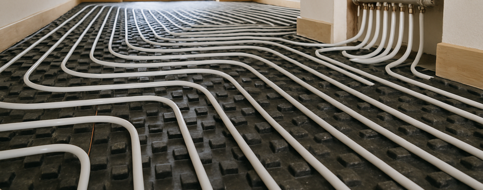 - Drainage and pipework progress alongside heating and cooling system installations.